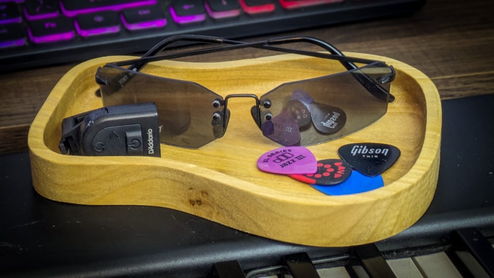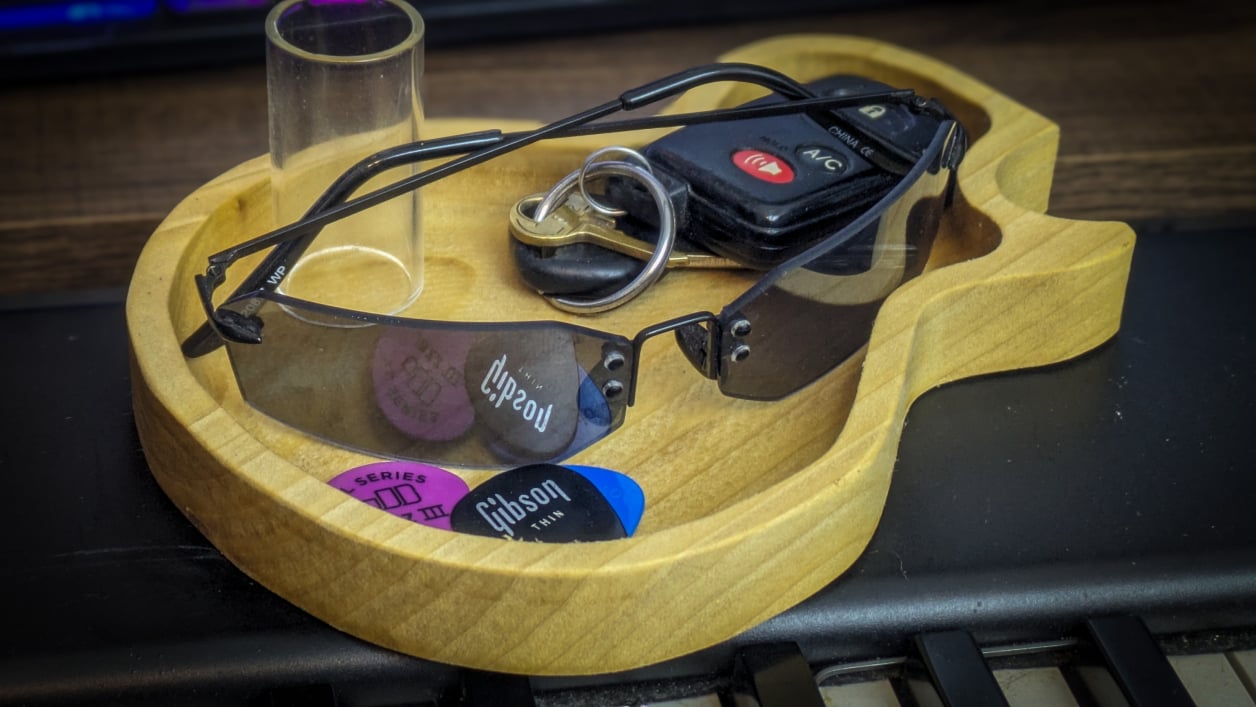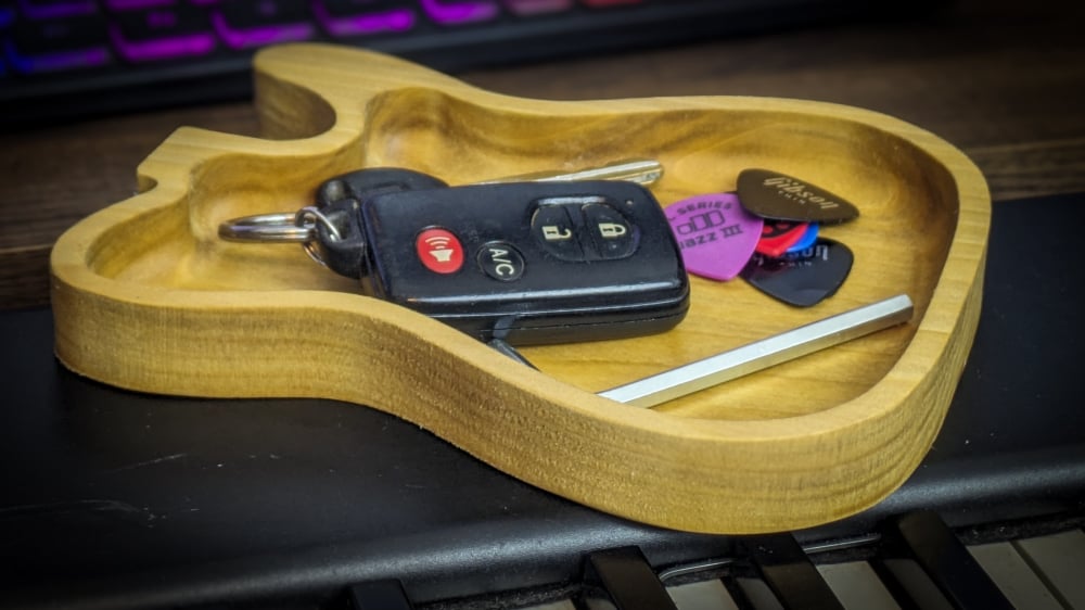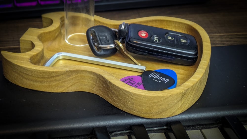 Get rid of all the clutter and loose ends. Guitar Catch All tray helps you organize loose stuff and makes a perfect gift for Music Lovers, Anniversary gift, Groomsmen Gift, Personalized Valet Tray, Wooden Catch All Tray, Custom Valet Tray, Personalized Catchall Tray, Desk Organizer, Men's valet tray, Entryway organizer, Birthday gift